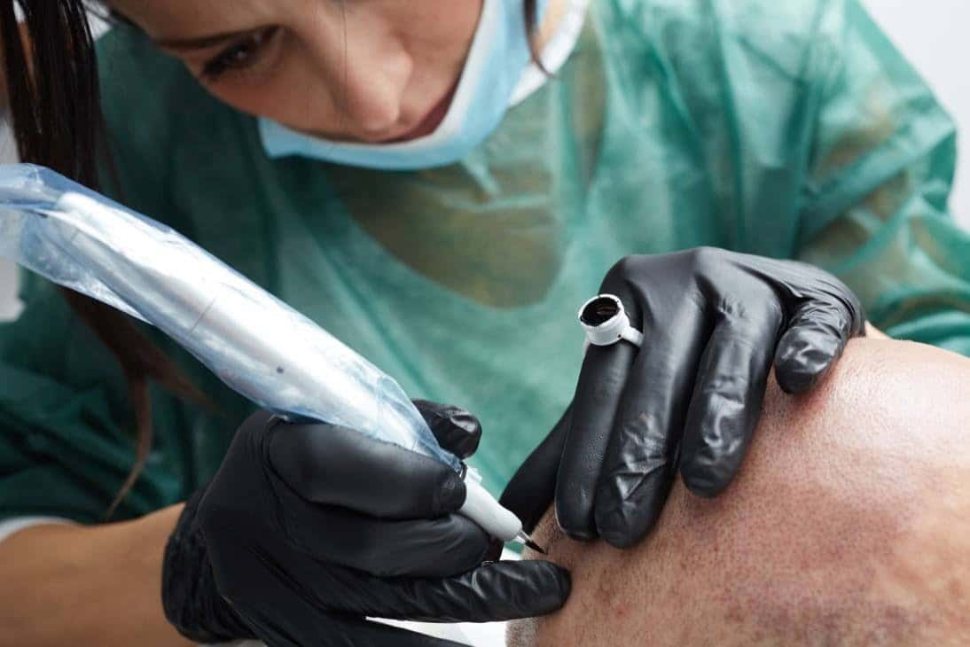 Scalp micropigmentation for scars is outstanding for two reasons.  Firstly, the careful application of genuine looking hair follicles in and around the scar, renders the scars invisible.  Of course, it takes a skilled and experienced artist to work effectively within scarred tissue.  This is critical to consider.  Secondly, the act of applying scalp micropigmentation on its own can help to relax the scars simply by interfering with the tight tissue and replacing it with healthier tissue.  When healed, you will forget that scar was ever there.